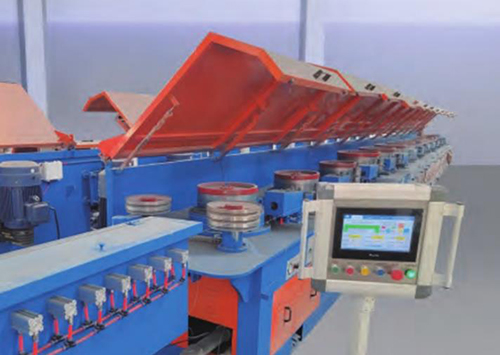 采用TVH6高性能矢量变频,可搭配编码器PG卡,矢量速度模式控制更加稳定。多级拉拔头速度实时同步,实现无极变频调速,同时结合PID张力控制,使拉线更加稳定,生产过程中可随时更改主机速度。